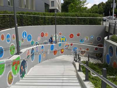 Graffitikunst von Kindern und Jugendlichen in der Unterführung am Südwestende der Theresienwiese,